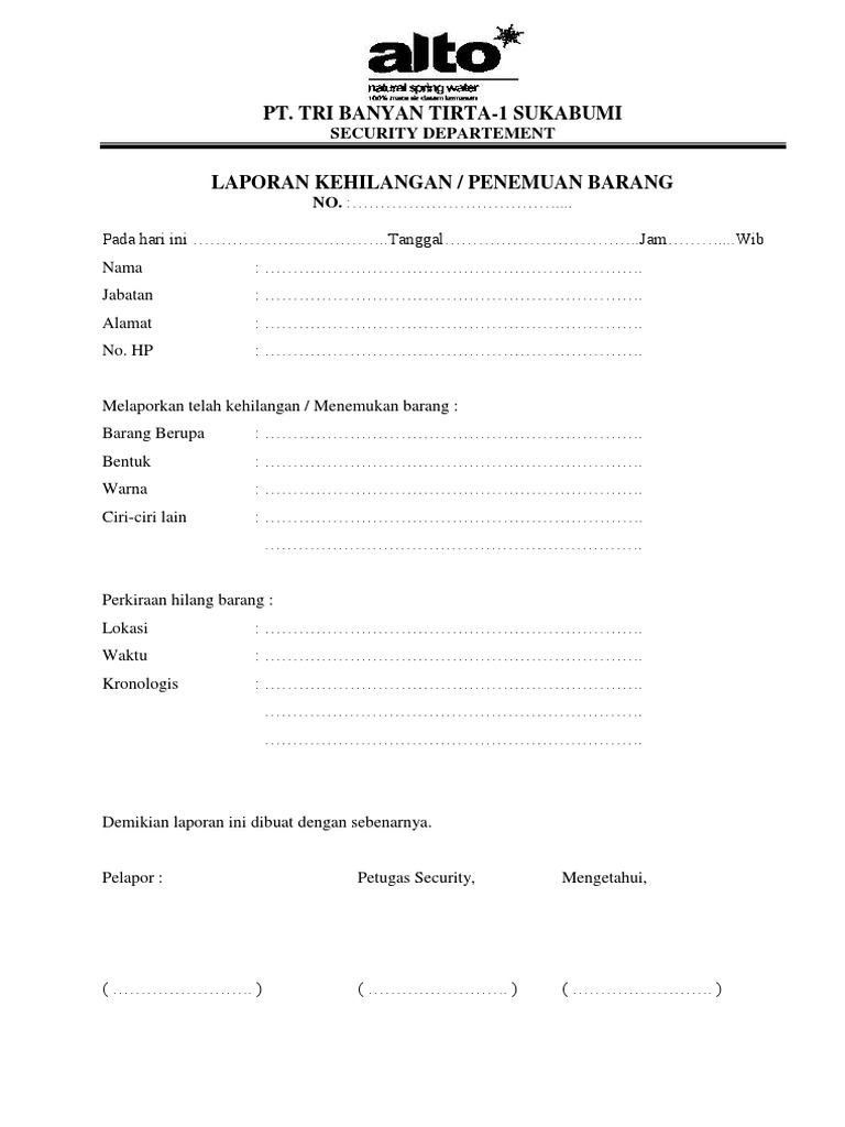 Awal tahun 2020 ada 5 laporan orang hilang di polrestabes palembang 4 diantaranya perempuan tribun sumsel. Laporan keuangan adalah informasi yang disajikan oleh entitas (perusahaan atau nirlaba) kepada pihak eksternal (pemangku kepentingan). Contoh surat pernyataan orang hilang. Surat kehilangan yang telah diterbitkan bisa digunakan untuk berbagai keeprluan seperti mengurus asuransi mengurus dan mendapatkan nomer handphone yang hilang dll. Mendatangi kantor polisi terdekat dari tempat tinggal · membawa kelengkapan yang di perlukan untuk mengajukan surat laporan kehilangan barang ( lkb ) seperti ktp.