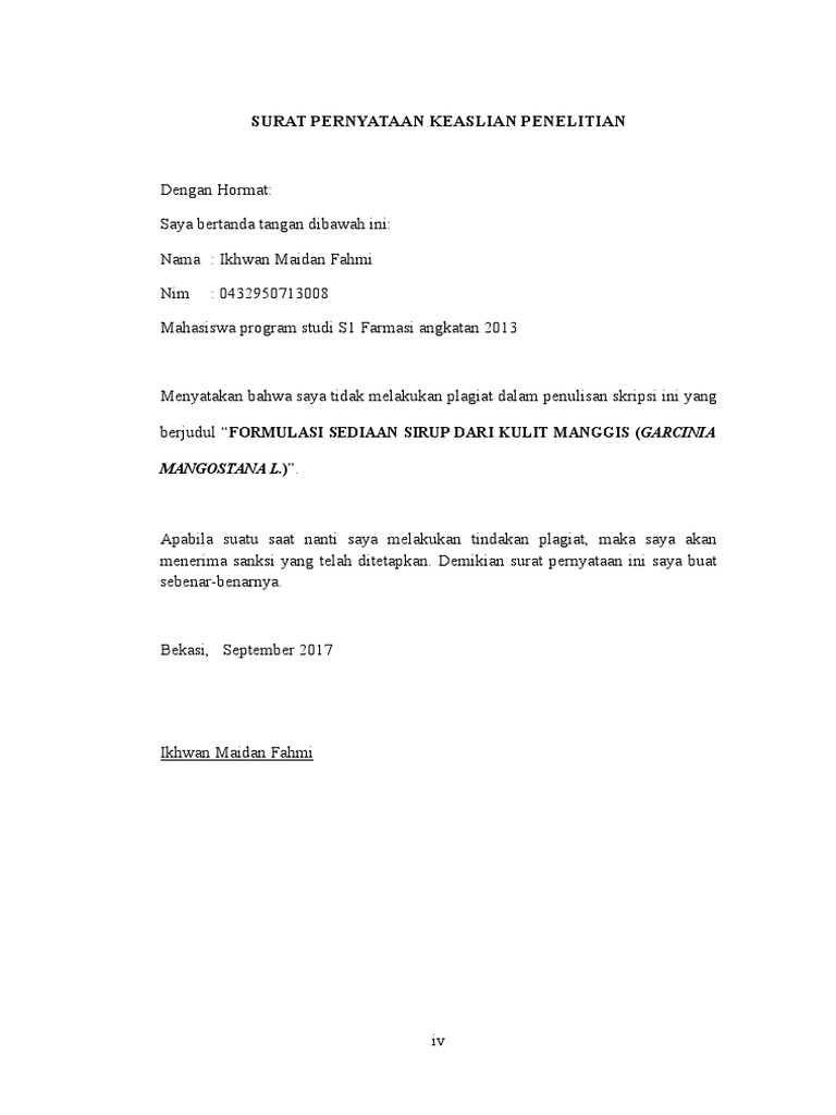Surat Pernyataan Memiliki Tempat Praktik from imgv2-2-f.scribdassets.com Namun surat ini hanya digunakan/dibutuhkan jika orang tua pelajar/mahasiswa tersebut tidak memiliki slip gaji. Kisi kisi ini meliputi indikator dan jumlah item pertanyaan atau pernyataan. Agar sang anak merasa terhibur. Jul 08, 2020 · contoh surat pernyataan kesanggupan. Dan bagi beberapa kalangan acara khitanan atau sunatan ini akan diselenggarakan acara syukuran dengan mengundang kerabat dan kenalan. Bentuk kuesioner yang digunakan penulis adalah angket terstruktur. Jun 08, 2020 · skripsi/thesis; Adapun contoh kepenulisannya sebagai berikut;